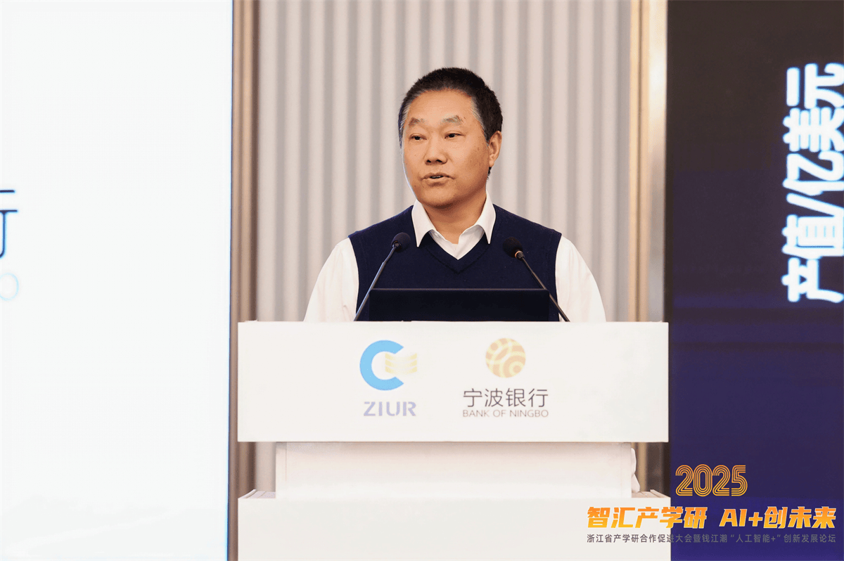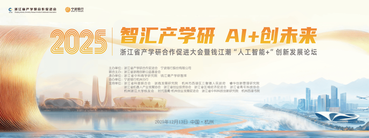 12月13日下午,2025浙江省产学研合作促进大会暨钱江潮“人工智能+”创新发展论坛在杭举办。大会由浙江省产学研合作促进会、宁波银行股份有限公司主办,浙江省浙商创新公益基金会联合主办,浙江省中科商学研究院、钱江潮产学研智库承办。来自政府、高校、科研院所、龙头企业、金融机构及新闻媒体的500余名代表齐聚杭城,共商“人工智能+”赋能浙江万亿级产业的路径与举措。