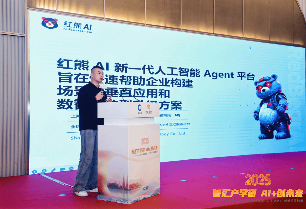 大会现场设立“AI+场景市集”,强脑、红熊AI、实在智能、浙大湖州研究院、海宁高研院等20多家产学研单位搭建沉浸式互动展位,展示AI+制造、AI+金融、AI+文创等解决方案。